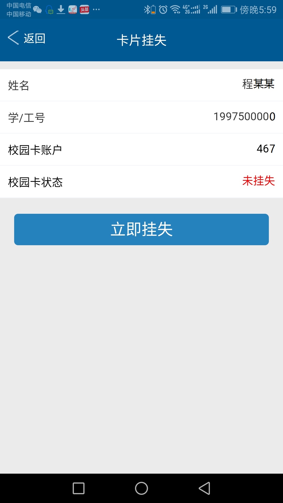 3)在手机APP上挂失: