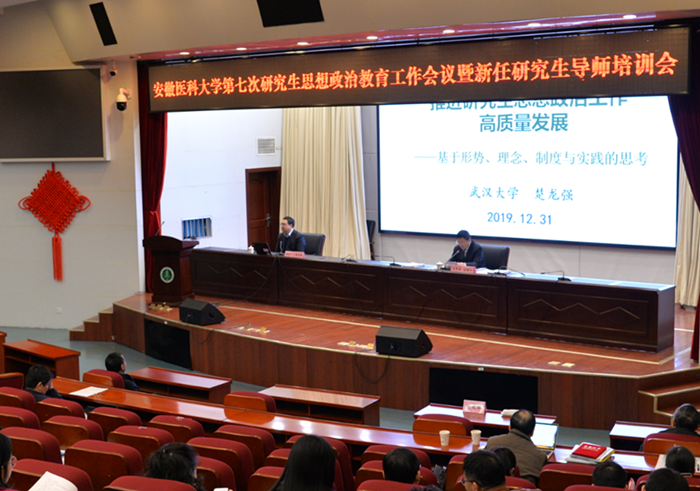 顾家山指出,自第六次研究生思政教育工作会以来,学校坚持以习近平新时代中国特色社会主义思想为指导,坚守为党育人、为国育才的初心使命,扎实推进研究生思政体制机制改革,在立德树人、思政教育、科研成果产出、人才培养等方面取得一系列丰硕成果。面对新形势,做好研究生思想政治教育工作必须要深刻理解习近平总书记关于教育和卫生健康的重要论述,深入学习贯彻党的十九届四中全会精神,主动对接国家和区域重大发展战略,对标对表学校第八次党代会的目标任务。