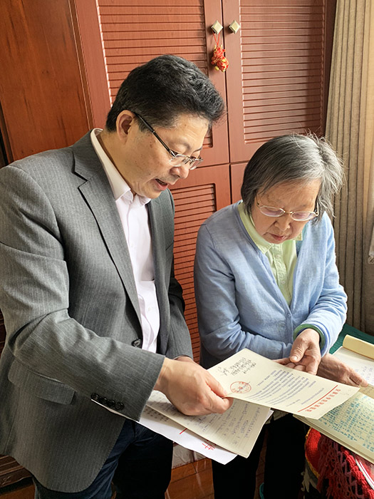 赵秀宝学长感谢学校领导专程前来登门吊唁,她亲切回忆讲述了于老的生前事迹,展示了于老生前获得的各项荣誉奖章,并将于老生前在手术过程中使用过的手术刀等医疗器械、主编的代表作《实用骨科手术图谱》《四肢显微血管外科学》等教材、照片、眼镜、白大褂等珍贵文献及重要校史资料捐赠母校,希望安医精神能得到更好的传承和发展。