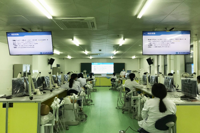 做好实验室相关疫情防控工作外,实验教学负责教师也为学生们精心准备了返校第一课内容。放射卫生实验课上,基础医学院核医学教研室教师徐师国按照教学大纲要求,向学生详细介绍了不同放射线的测量方法,对于不同放射性污染的防护和处理方式作了仔细说明,并叮嘱同学们要在日常继续做好个人防护。公共卫生实践技能课上,公共卫生学院教师张志华按照公共卫生执业医师资格考试规范,对“防护服的穿脱”这项技能操作进行了细致的讲解和示范,结合公共卫生技能大赛的经验向学生传授了技巧,并对学生的操作练习进行现场指导和现场答疑。牙周病学实验课上,口腔医学院教师孙晓瑜、程楠严格按照口腔执业医师资格大纲,向学生重点讲授了临床、执医医师资格考试时容易出现的错误,并将龈上洁治术的实验课贯穿于牙周理论课当中。