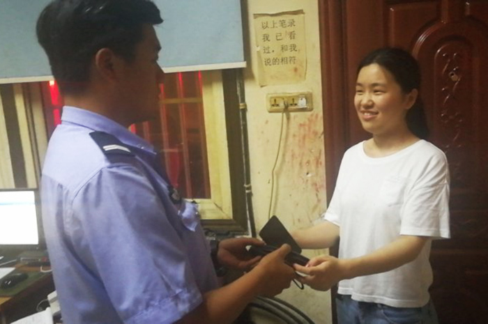 6月11日夜里,第一临床医学院学生周江源像往常一样散步,在走到六安市妇幼保健院附近准备骑共享单车回家时,发现车篮里有一个男士黑色钱包。她犹豫了一下,然后选择打开钱包查看是否有失主名片等联系方式,没想到有数千元钞票及身份证、银行卡等重要物品。作为一名医学生,她很担心这是前来妇幼保健院就诊的患者情急之下落下的,于是便第一时间赶往最近的六安市三里桥派出所说明情况,寻求警察的帮助。