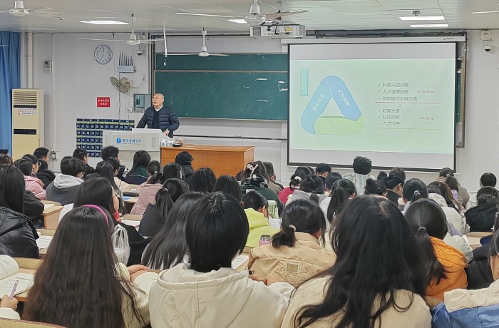 12月1日晚,副校长余永强在锡祺楼14102教室为本科生讲授了题为“加快建设教育强国、科技强国、人才强国”的“形势与政策”课。