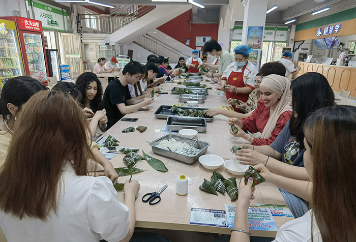 与此同时,学院努力做有温度的来华留学生管理。春节期间走访慰问寒假留校的留学生,发放喜庆的春联、中国结以及慰问品;端午节时组织留学生包粽子,中秋节举办茶话会并送上中秋月饼……一系列服务保障活动深受留学生喜爱。