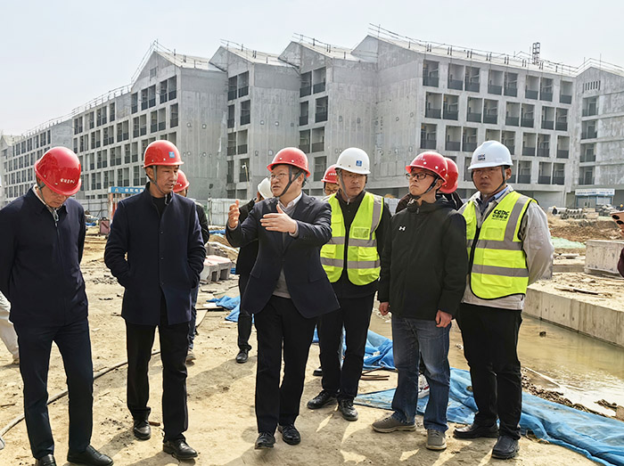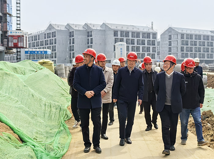 3月13日上午,校党委书记顾家山、副校长徐朝阳一行前往新医科中心(新校区)项目建设现场,就2024年秋季开学部分学生入住保障工作开展调研。代建单位安徽省公益性项目建设管理中心主任刘青松陪同调研。