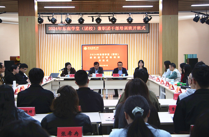 4月10日下午,2024年东南学堂(团校)兼职团干培训班开班式在梅山路校区青年之家举行。校党委常委、副校长肖圣龙出席开班式并讲话。校党委常委、组织部部长李阳新宣读任命文件。