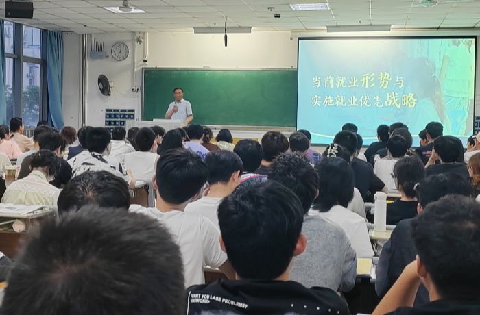 5月21日,副校长徐朝阳在知行楼B11203教室为本科生讲授题为《当前就业形势与实施就业优先战略》的“形势与政策”课。