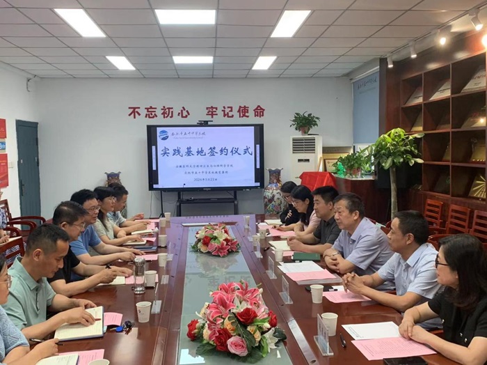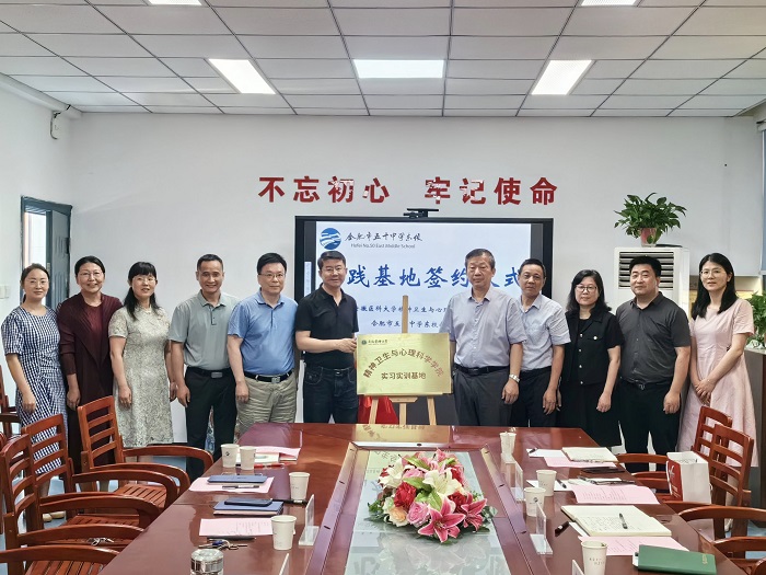 5月23日下午,精神卫生与心理科学学院举行与合肥市第五十中学东校教育集团实践基地签约仪式,副校长肖圣龙出席活动并为实践基地揭牌。蜀山区教体局、合肥市第五十中学东校教育集团主要负责人等参加仪式。