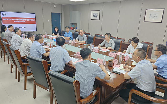 公共卫生学院党委书记马军成主持会议,学院执行院长王华汇报了高水平公共卫生学院建设方案,健康大数据与群体医学研究所负责人陶芳标教授汇报了研究所的建设情况。