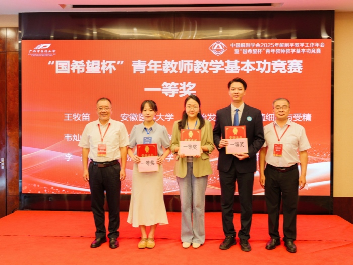 8月2日至3日,在广西南宁举行的中国解剖学会2025年“国希望”杯青年教师教学基本功竞赛决赛中,我校基础医学院组织胚胎学教研室教师王牧笛经过激烈角逐,以第一名的优异成绩,从来自全国17所医学院校的23位优秀决赛选手中脱颖而出,荣获一等奖。